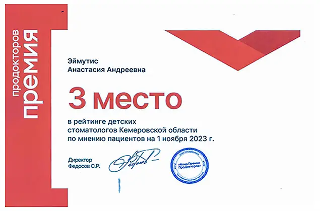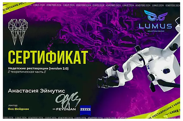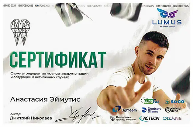 Данные об аккредитации или сертификате специалиста (специальность, срок действия): Стоматология общей практики 27.08.2029